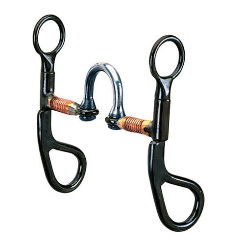 This black steel bit features a 5" copper wire wrapped correction mouth and 6" loose cheeks.