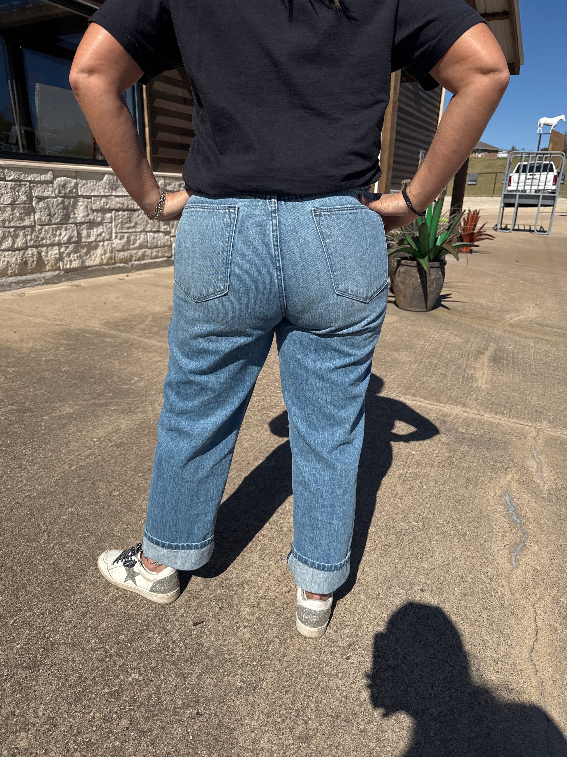 These jeans in Candy/Light Wash feature a contoured waistband that shapes to your curves, allowing comfortable movement. They fit snugly at the hips and upper thighs, with a 12" ultra high rise that rests just above the small of your waist. From the high thigh down, the leg relaxes into a 16" opening. Crafted from durable 12 oz ring-spun denim, they offer both style and comfort throughout your day.