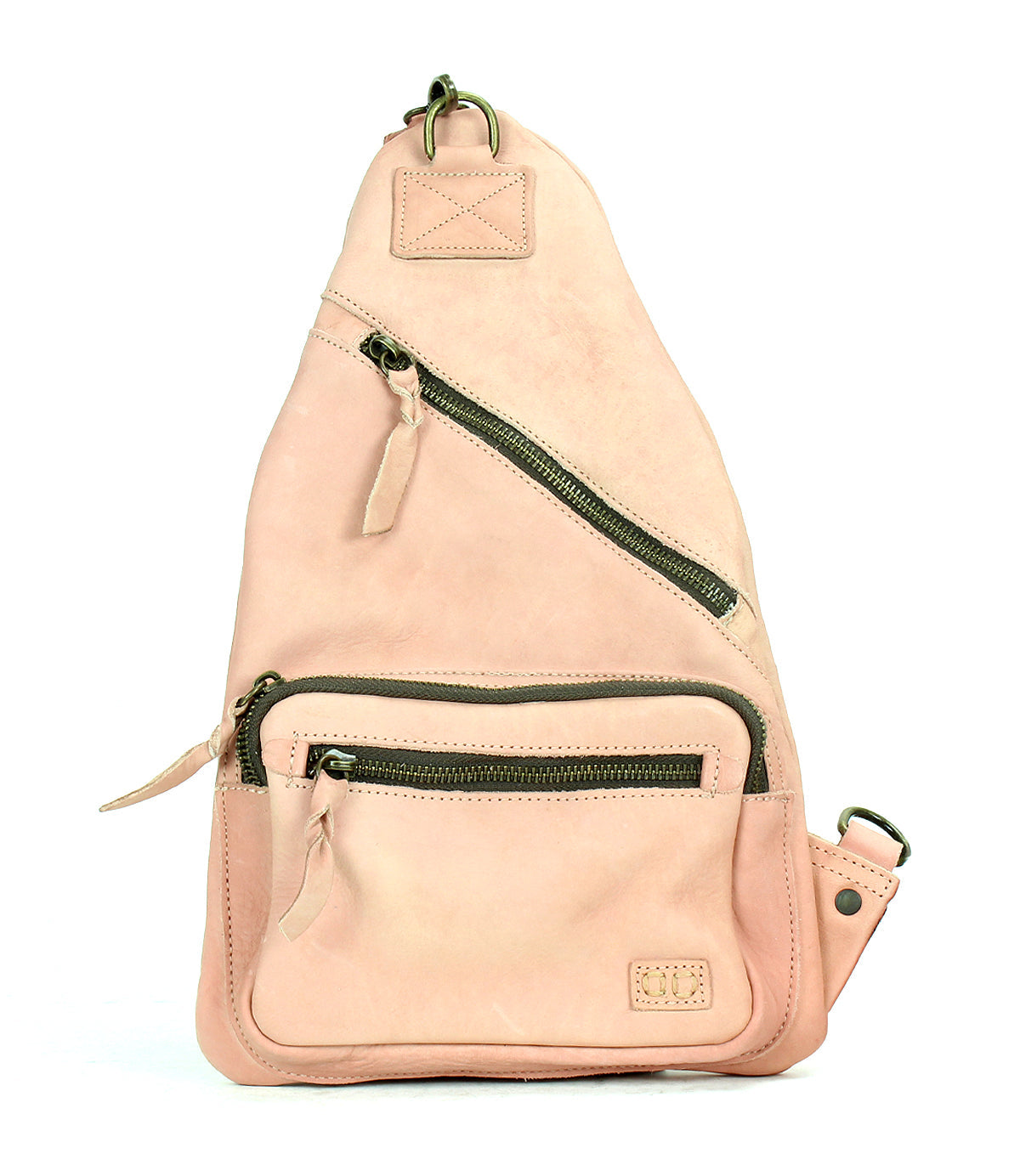 - Sling leather backpack, 3 external zipper pockets, inside 1 zipper & 1 slip pocket