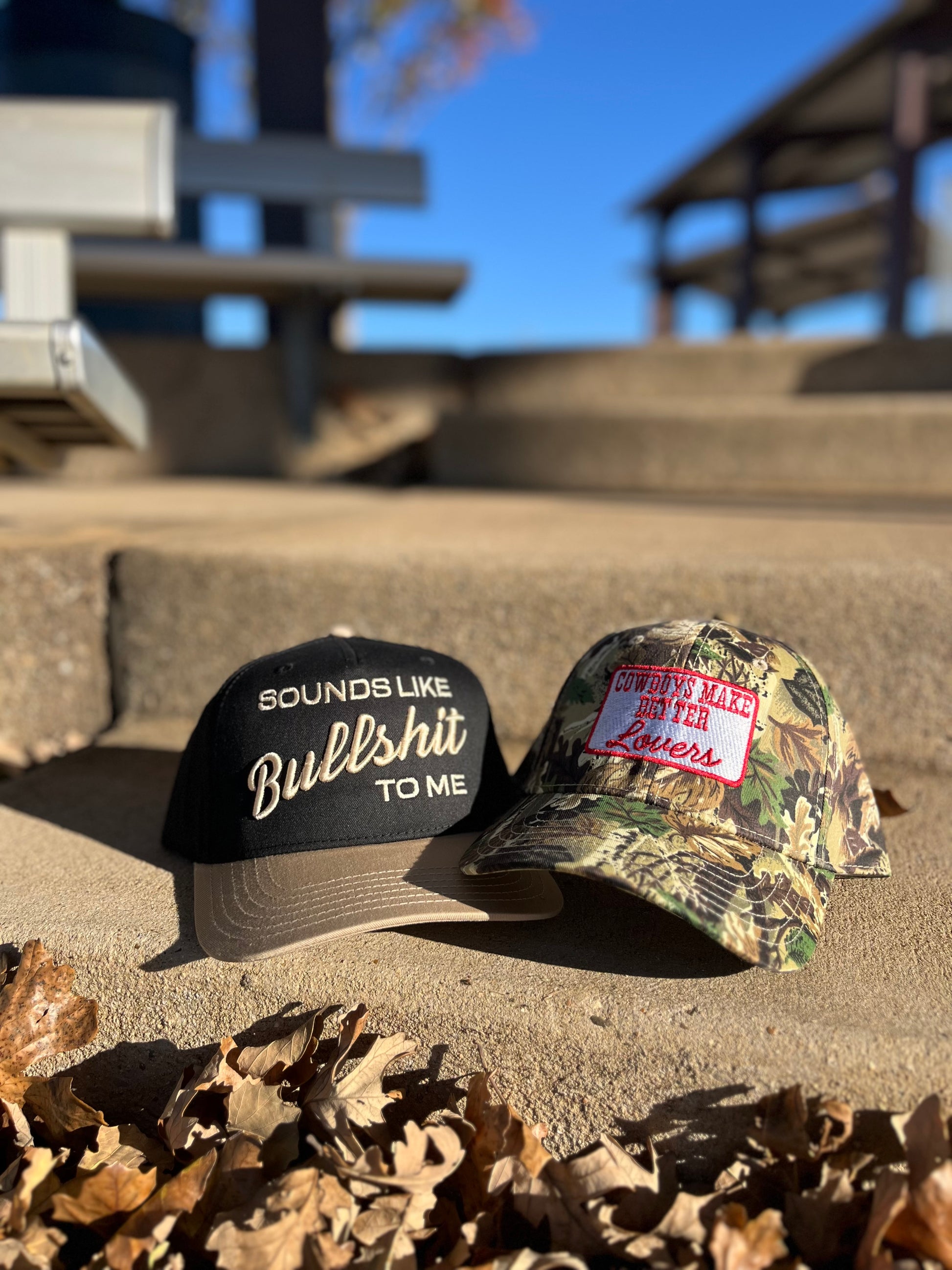 Show off your unique style with the Camo Trucker Cowboys make better lovers patch hat from Trek Outfitters. Designed for women who love bold fashion and aren't afraid to make a statement. This hat, part of our accessories collection, is more than just an add-on, it's a fun way to express your personality. Whether you're showcasing your western roots or adding a touch of sass to your outfit, this hat is perfect for you. Join the hat party and turn some heads with Trek Outfitters.