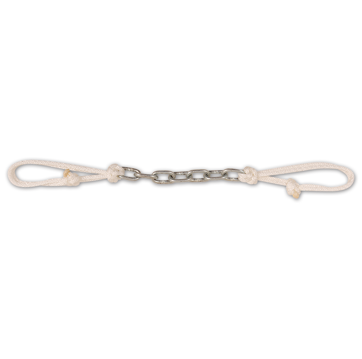 Dog chain curb strap with adjustable string tie. 7 chain links.