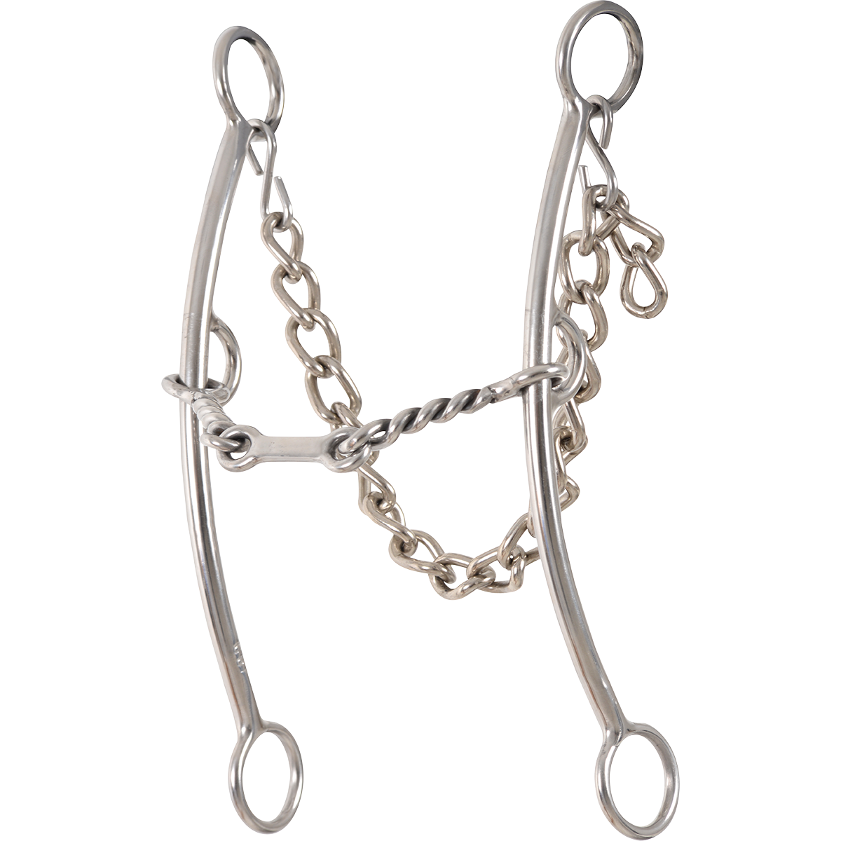 The Pickup Bit is available in long shank version and is Carol's next step up in control. Works well for obtaining shoulder control on seasoned horses that need help keeping their shoulder lifted going into the turns. Offers increased shoulder control and rate when needed. Horses that are harder mouthed usually respond well to the Pickup bit when lighter gag bits are not enough.