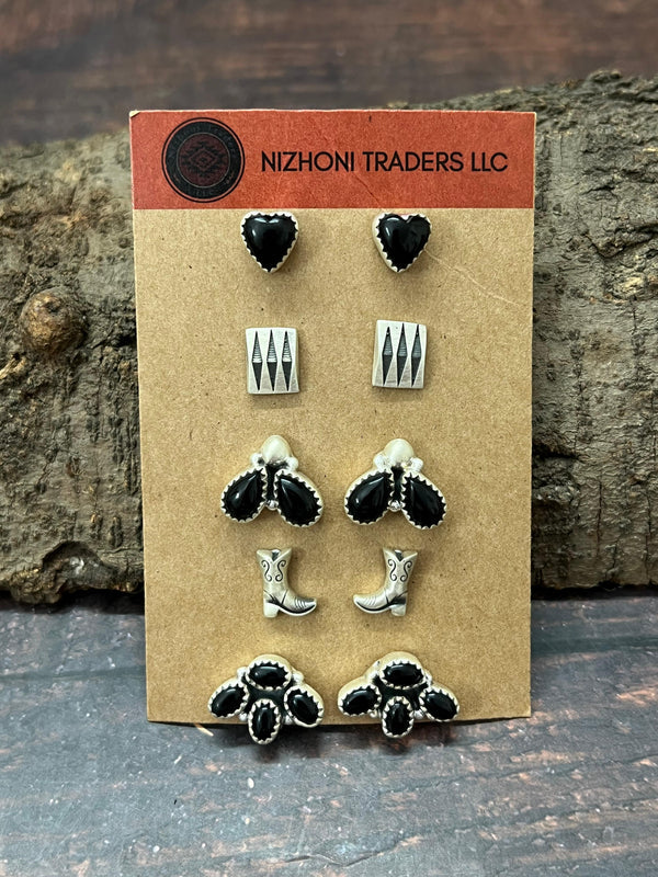 Handmade Sterling Silver Black Onyx Post Earring Set