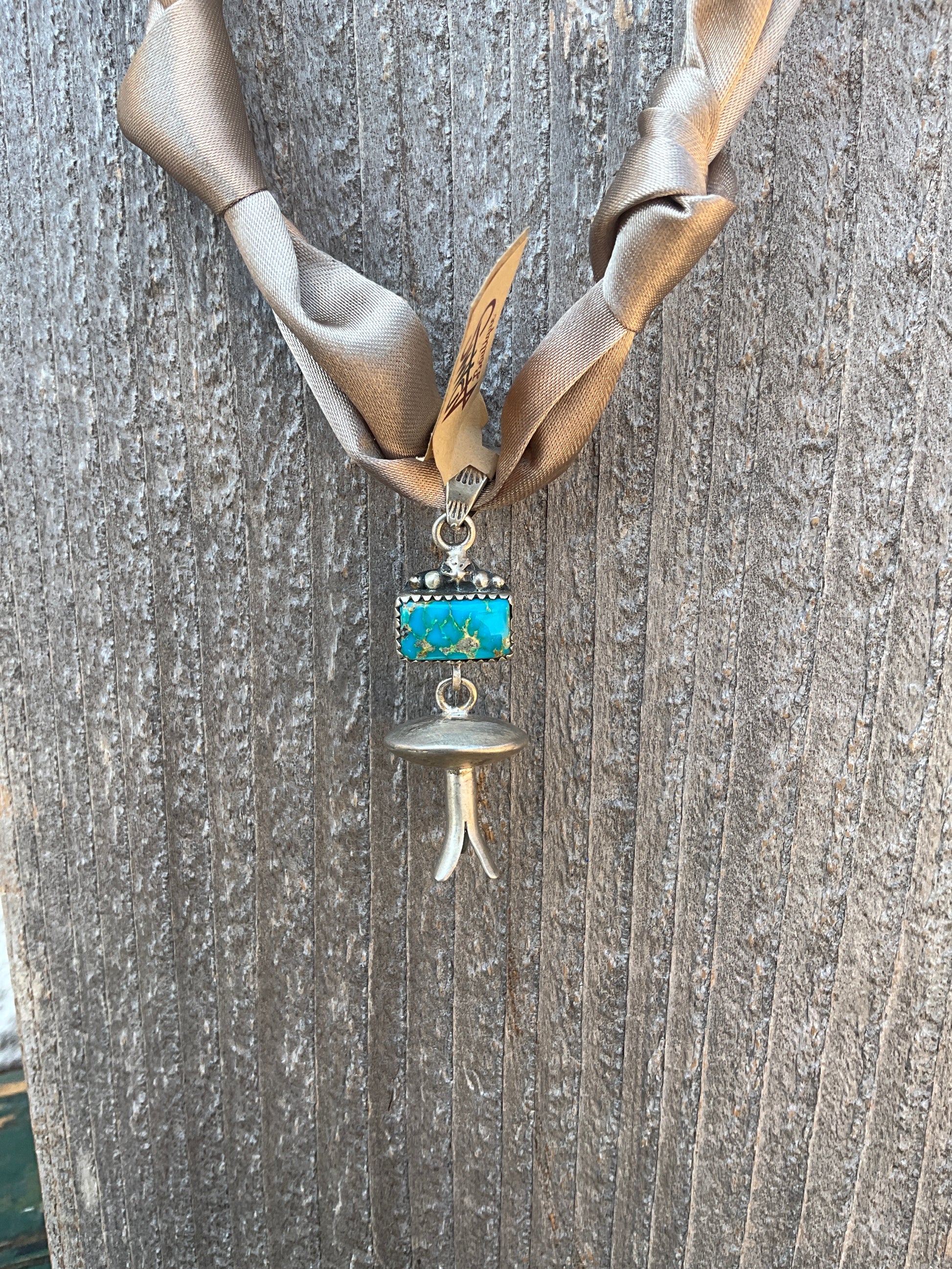Handmade Sterling Silver Sonoran Mountain Turquoise Blossom Pendant