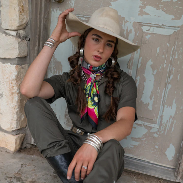 Printed on 14mm satin silk with a rich finish and hand-rolled hem. Collector's edition.