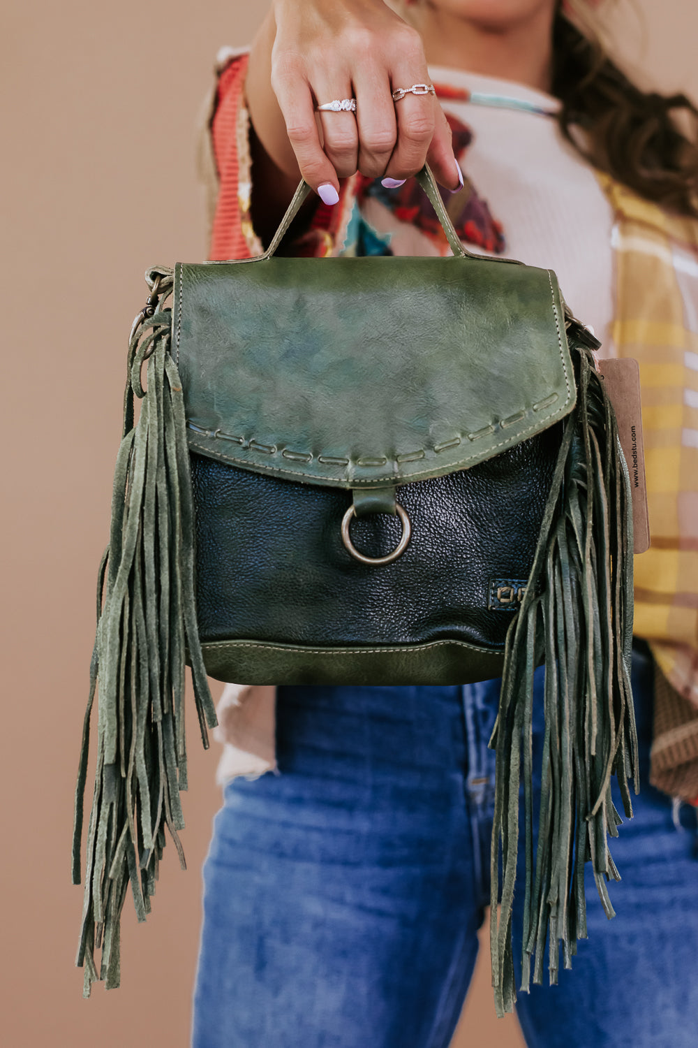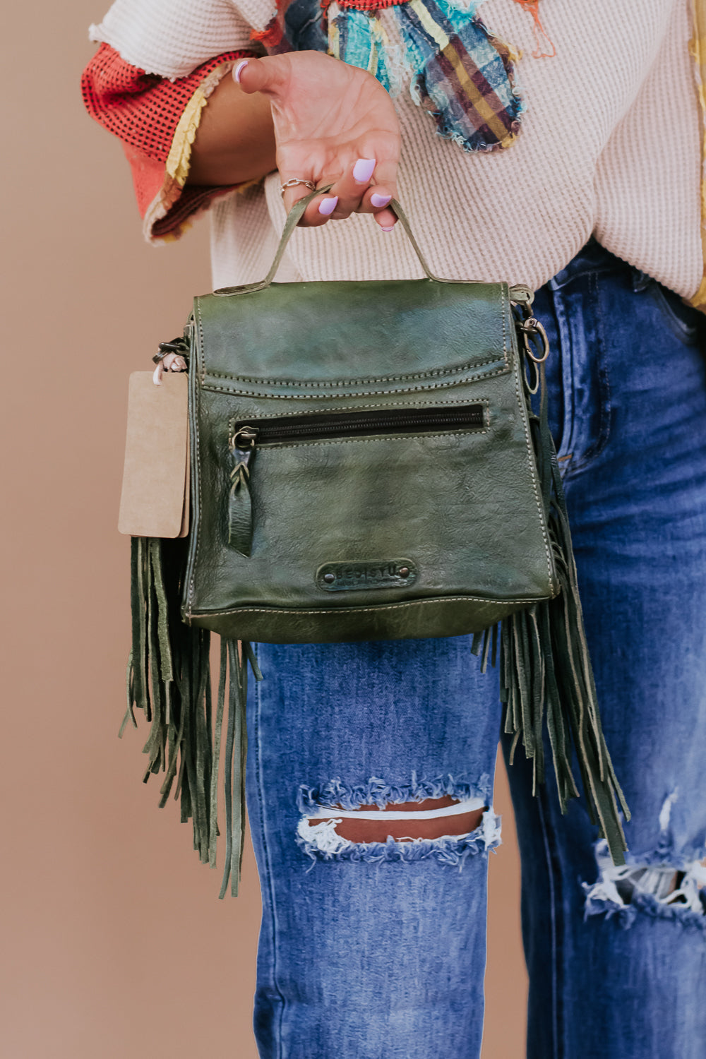 Hidden is a compact leather crossbody bag packed with fun fringe. It sits upright, has a small handle on top to hand carry, and also comes with an adjustable and removable crossbody strap. Add a touch of whimsy and flair with Hidden at your hip.