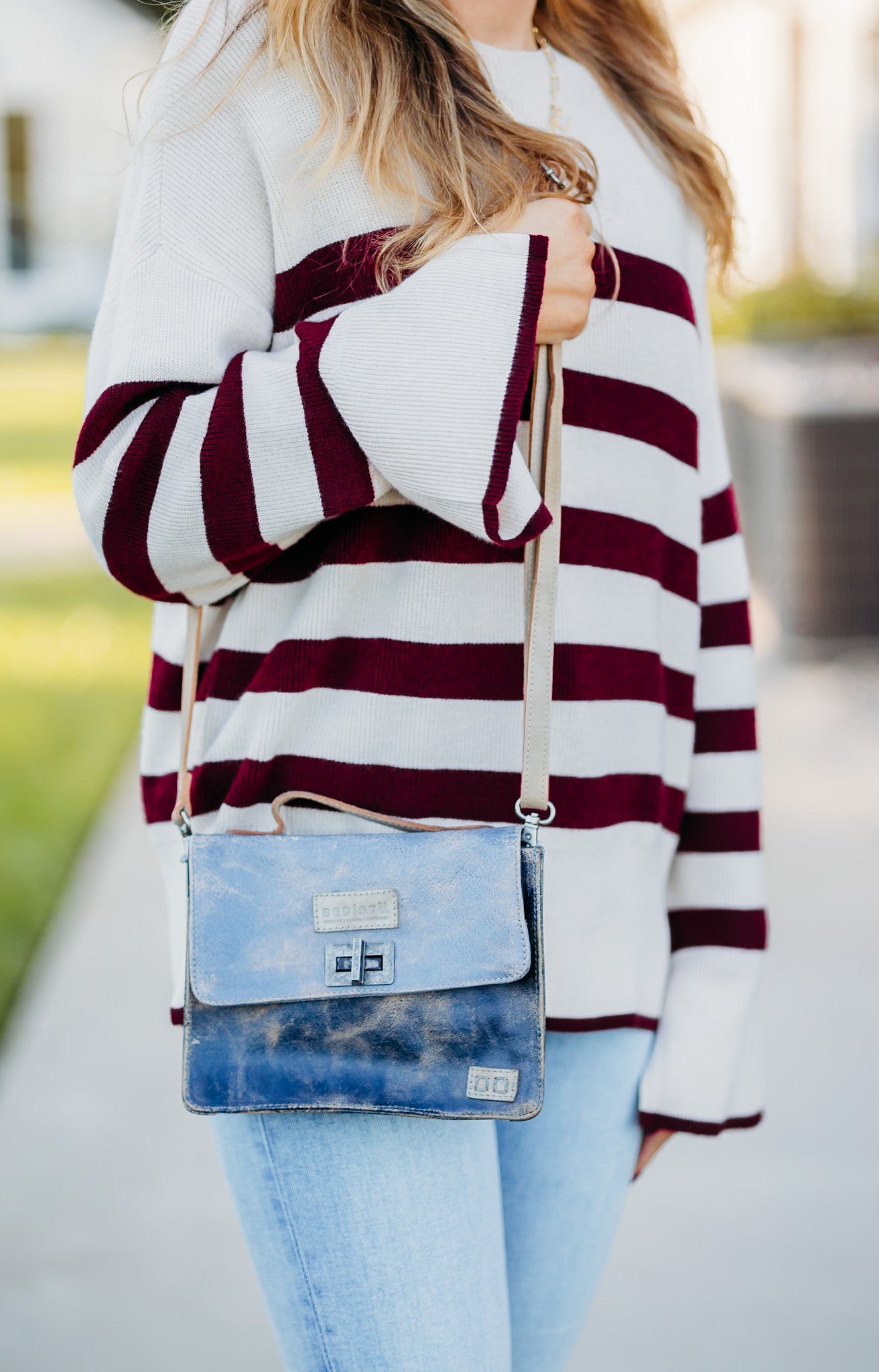 - Compact rectangular shaped bag with hand-held handle and removable crossbody strap