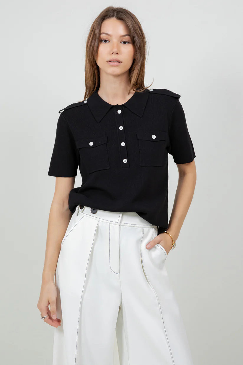 KNITTED BUTTON DOWN POLO SHIRT - BLACK