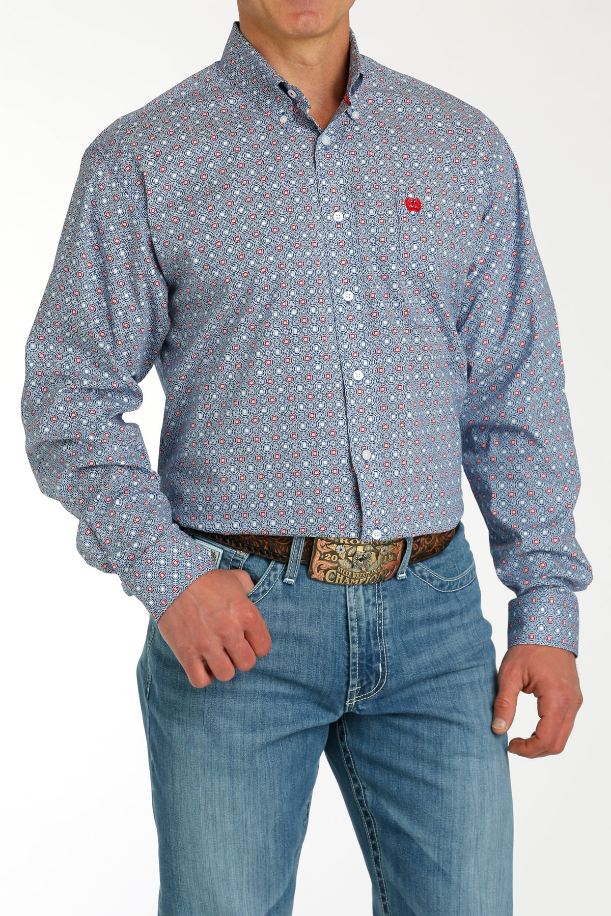 MENS CINCH L/S ROYAL AND RED SMALL PRINT