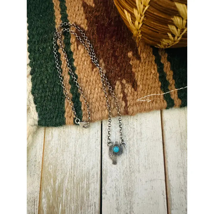 Navajo Sterling Silver & Turquoise Cactus Necklace