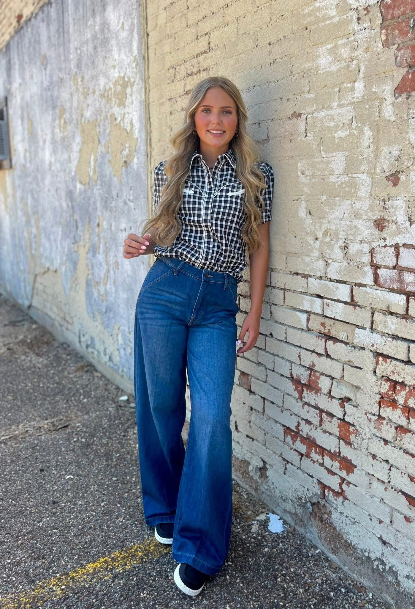 NORI DARK WASH 31" INSEAM WIDELEG TROUSER
