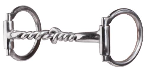 This D ring is made from 5/16" diameter material and has an outer diameter of 2 7/8". This D ring is slightly more compact than a normal 3 1/2" D ring. The 5/16" material adds a little more weight which helps the stability and release. The two-piece half and half mouthpiece combines a twisted wire bar piece and smooth mouth across the tongue. This mouthpiece is softer than a complete twisted wire.