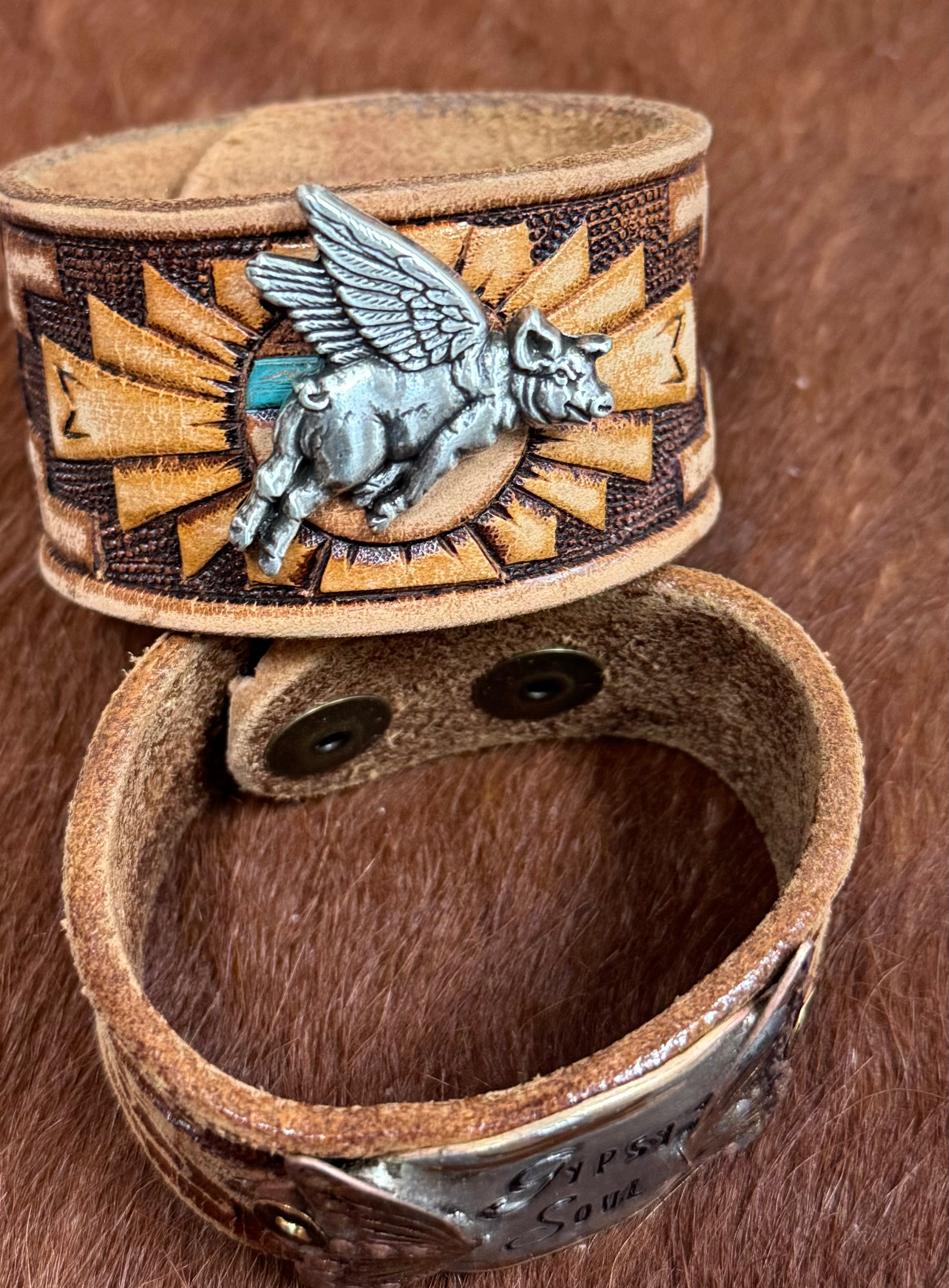 Pigs Fly Leather Cuff