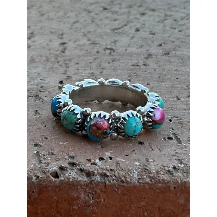 Pink Dream and Kingman Turquoise Sterling Silver Eternity Band Sz 6