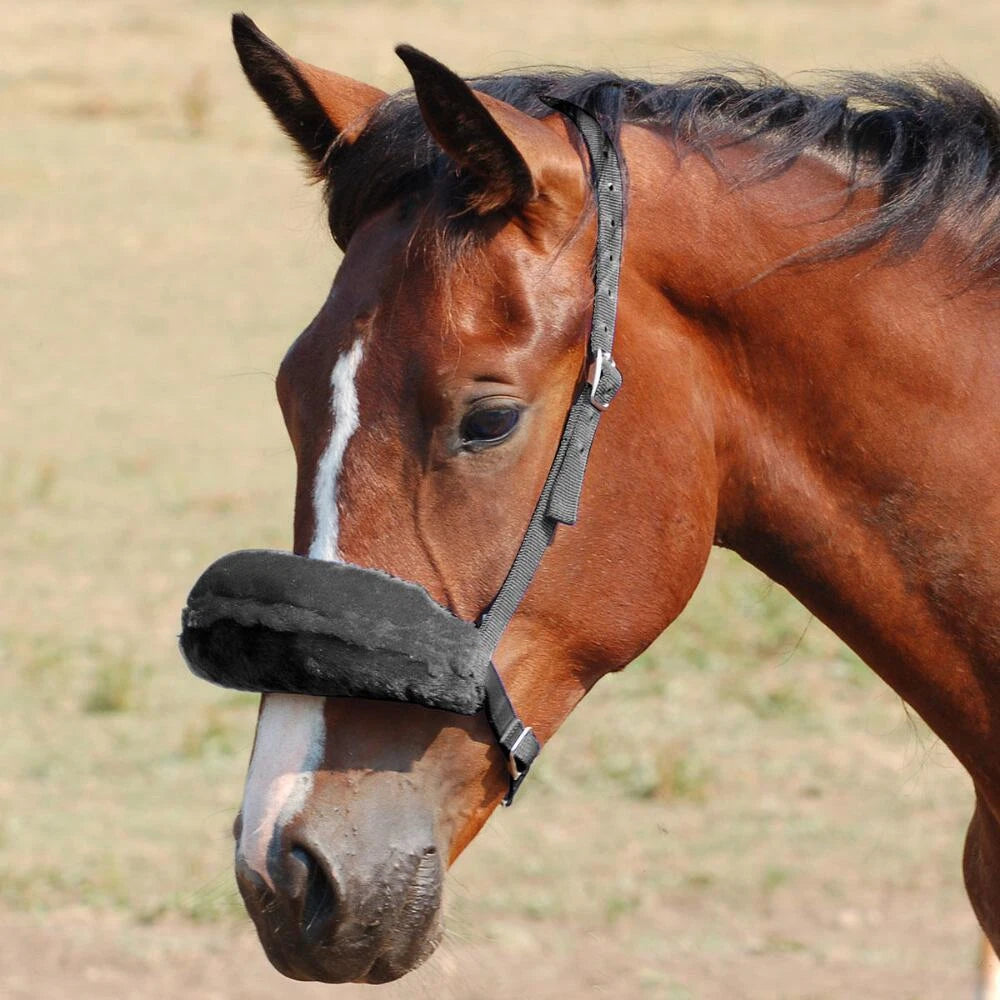 Made of synthetic fleece with foam core nose band. Adjustable 3/4" wide nylon headstall and chin straps with chrome plated buckles.