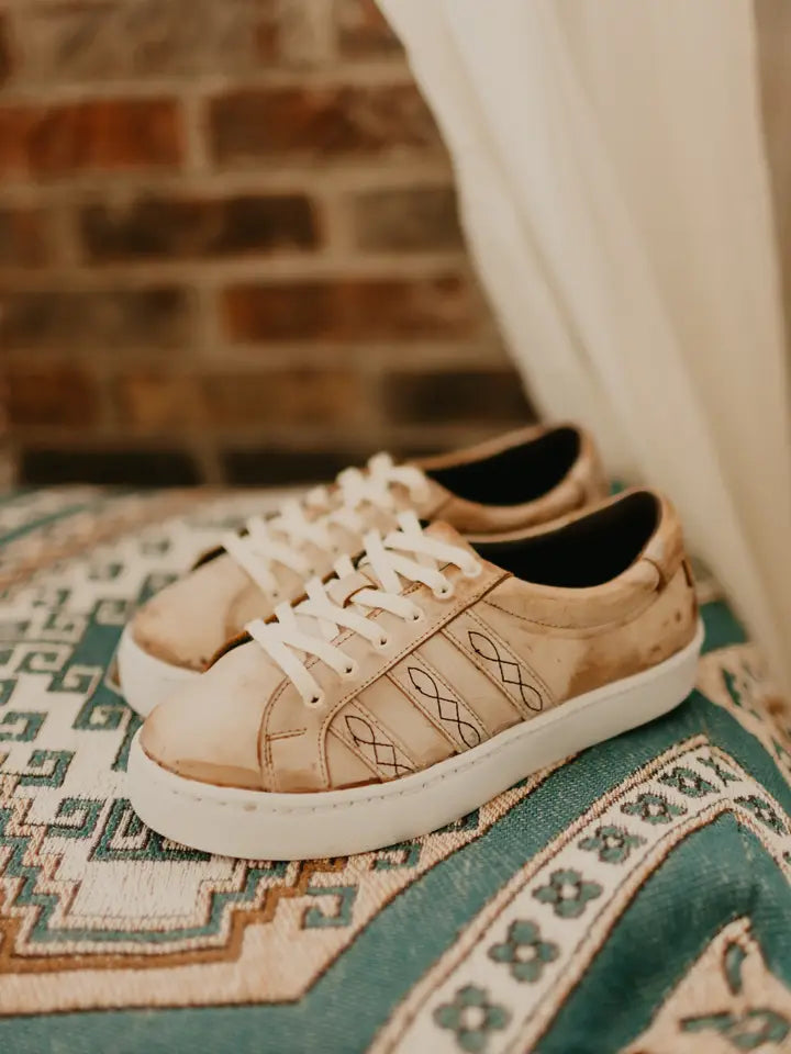 Not your usual run of the mill tennis shoe, that's for sure! Our Sheridan Tennis features distressed leather that will age and develop a natural patina with wear. That, paired with the unique western stitching on the side, make these a must-have staple for the fashion-forward western enthusiast.
