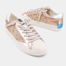 Presenting the RUBY - a sophisticated low-top sneaker meticulously crafted from a fusion of black and glittery suede and premium faux leather. This sneaker showcases flawless stitching details and resilient rubber soles, ensuring enduring comfort and support. Pair these with trousers or a skirt for an effortlessly chic and captivating ensemble. They are accompanied by a contemporary hanging tag highlighting the brand's iconic symbol, adding a touch of style and practicality.