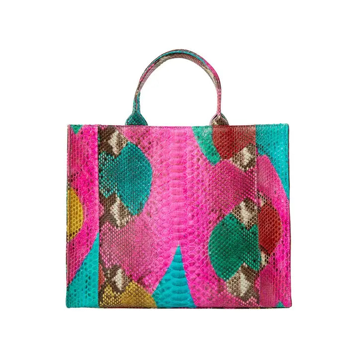 Handcrafted from genuine snakeskin, the Adelaide in rainbow python is a luxury version of our classic bestselling leather handbag, featuring the same structured form and understated elegance as the original. Perfect for everyday use, the Adelaide also functions as a crossbody purse with its detachable python strap. Hand-painted for color, with a coordinating suede lining.