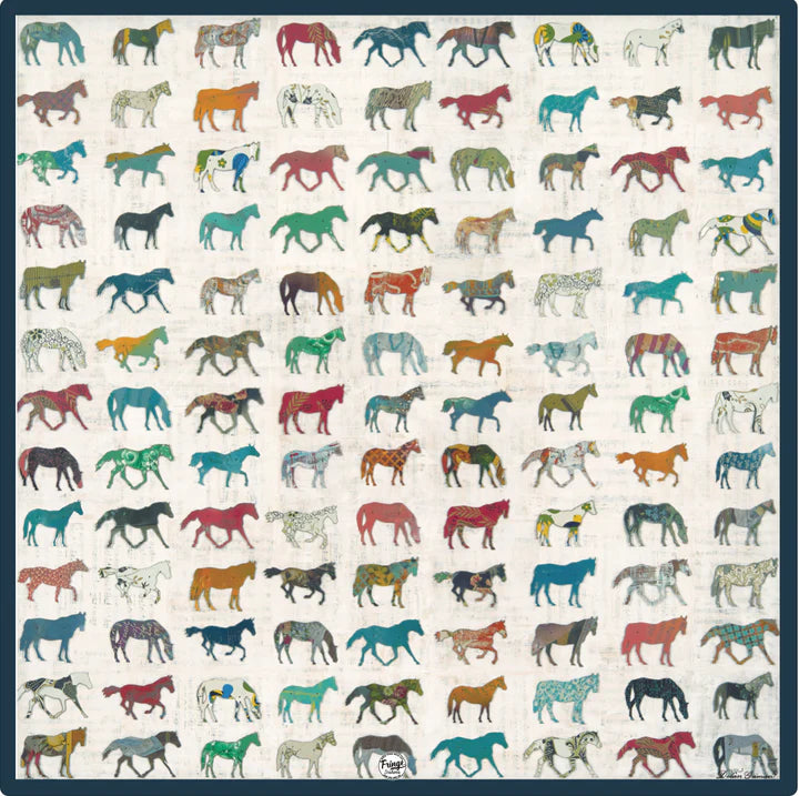 The Remuda captures the power and movement of a wild horse herd beneath a boundless sky. Adapted from Dolan’s original paper collage, each horse—while appearing similar from afar—reveals its own unique detail and texture upon closer look. This piece channels both freedom and subtle complexity in motion.