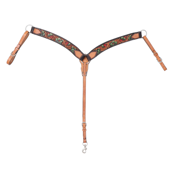 Turquoise Cross Cactus Tooled Contoured Breast Collar