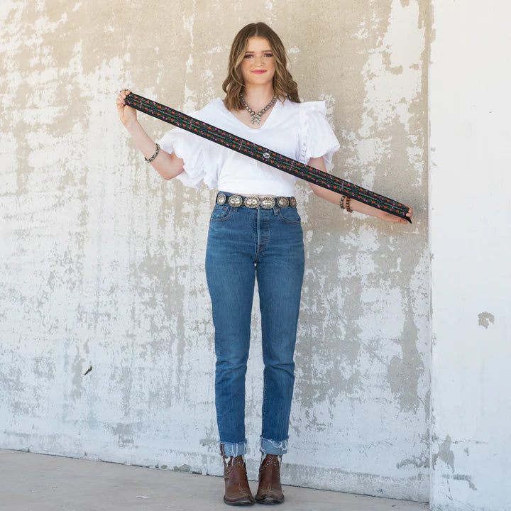- COLOR: Black with colorful floral and Aztec accents.