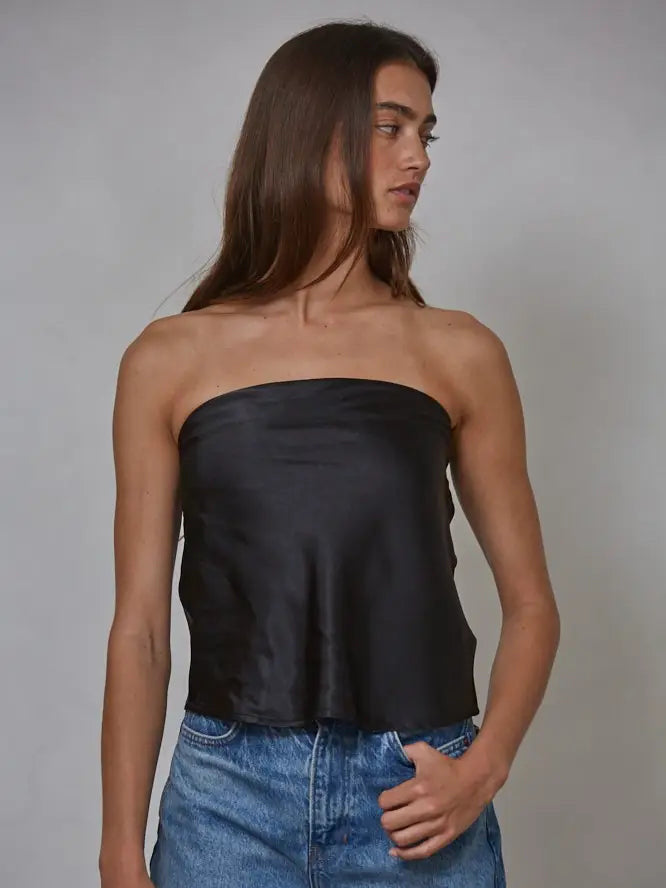 Woven Polyester Spandex Satin Tube Neck Strapless Top